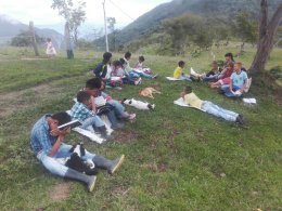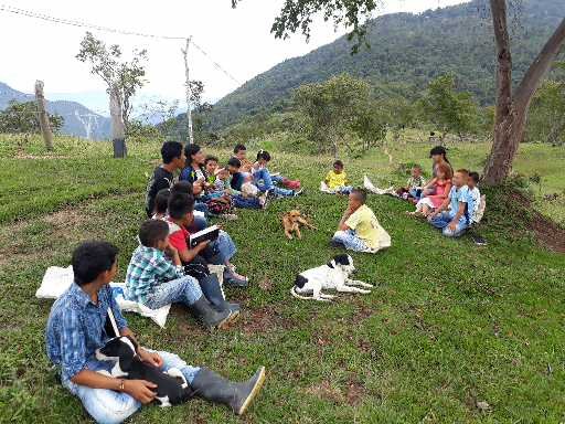 Aunque para ir a la vereda de Búritica los Misioneros se demoran de 2 a 3 horas caminando, no ha impedido realizar esta gran obra. En el momento se reúnen al rededor de 25 personas. Gloria y Honra a nuestro Dios.